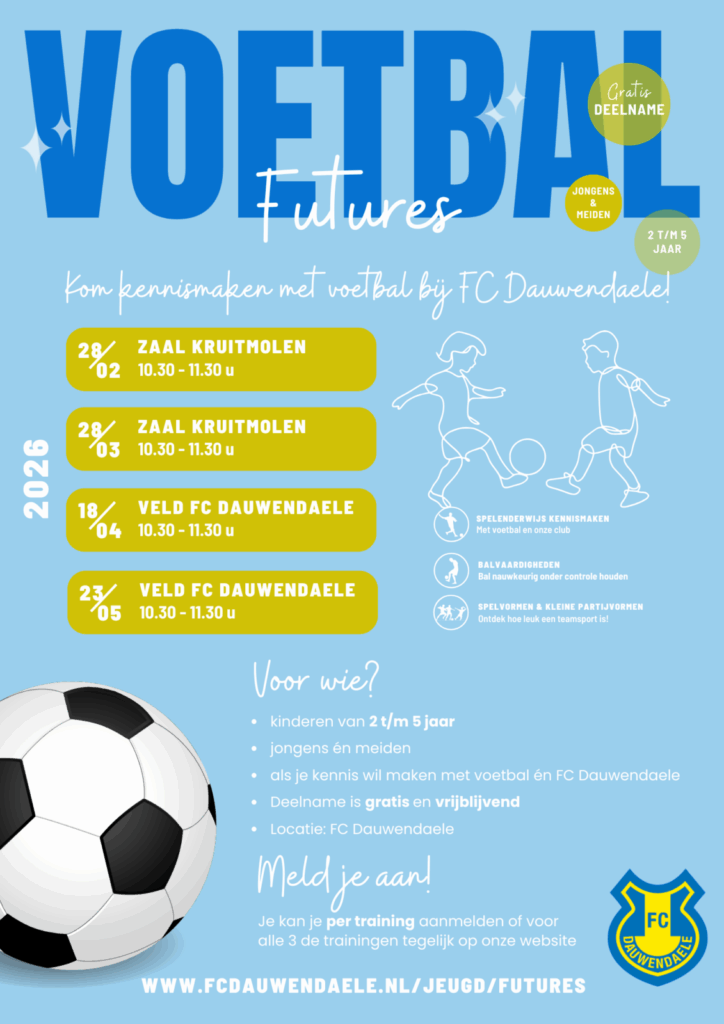 Dan hebben we leuk nieuws! FC Dauwendaele organiseert speciale Futures-trainingen voor de allerkleinsten.