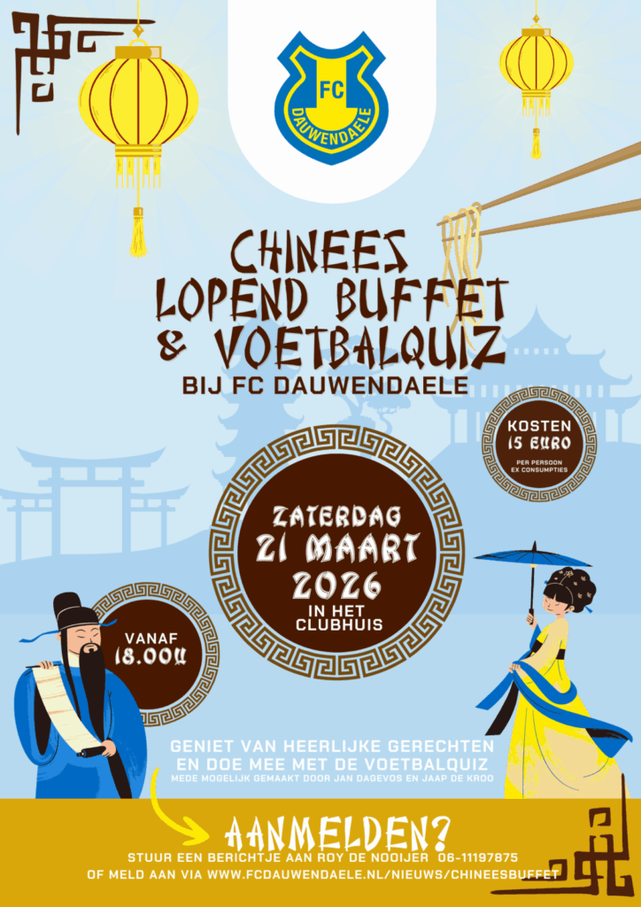 Kom genieten van de Aziatische keuken tijdens ons grote Chinees Buffet met Voetbalquiz. Een perfecte combinatie van heerlijk eten en sportieve gezelligheid!