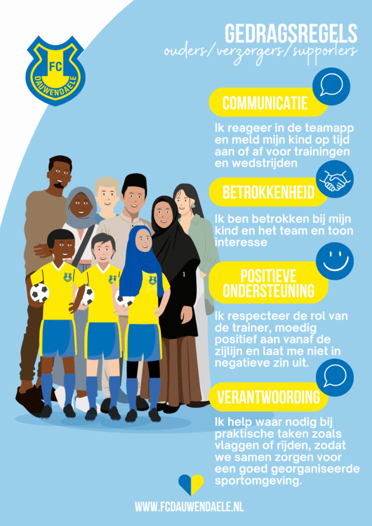 Bij FC Dauwendaele hadden we al enige tijd gedragsregels voor spelers, trainers, bestuursleden en officials. Daar hebben we nu een vijfde variant aan toegevoegd: gedragsregels voor ouders, verzorgers en supporters.